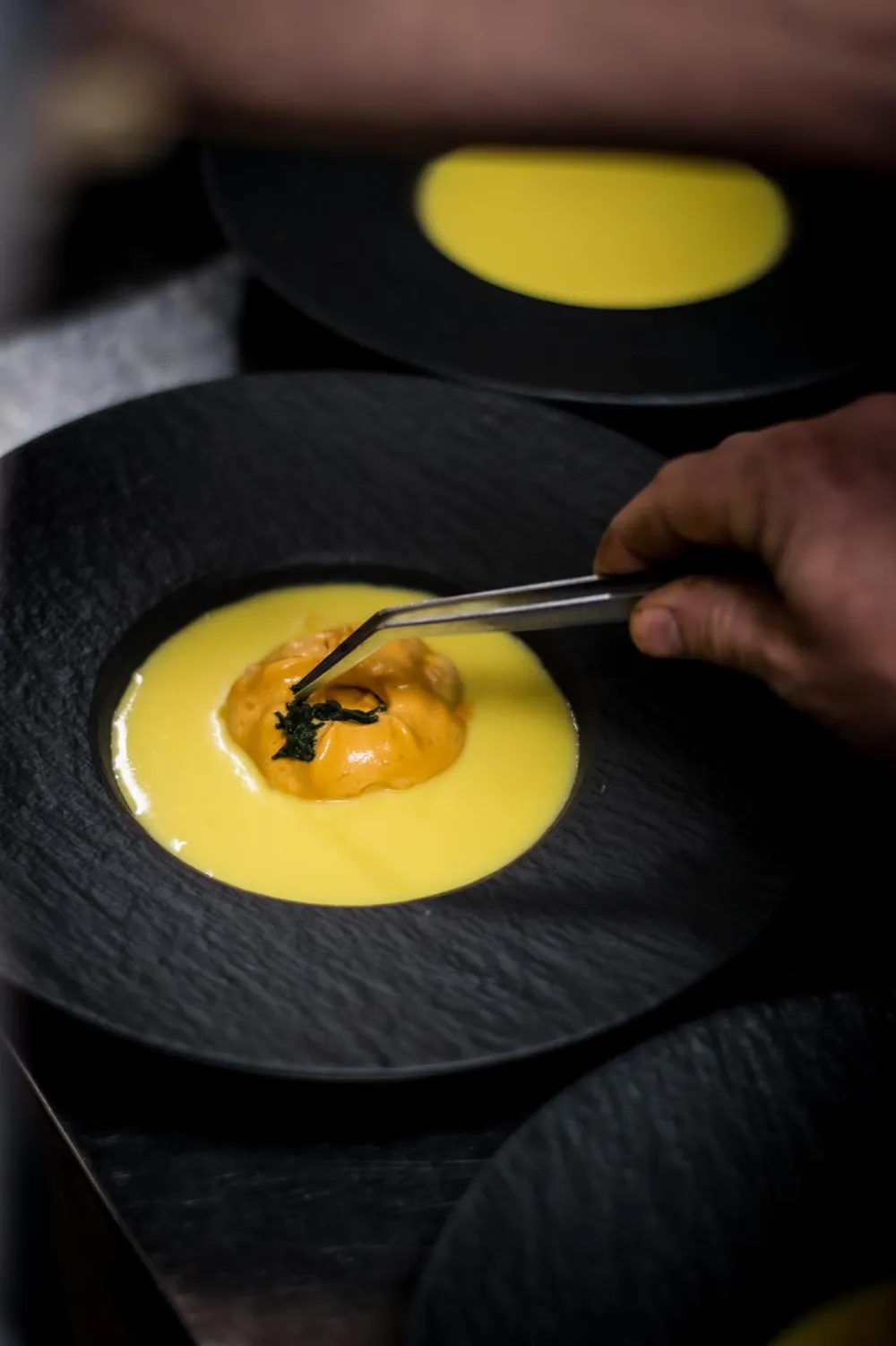 krem juha od jadranskih rakova, kruton sa začinskim biljem